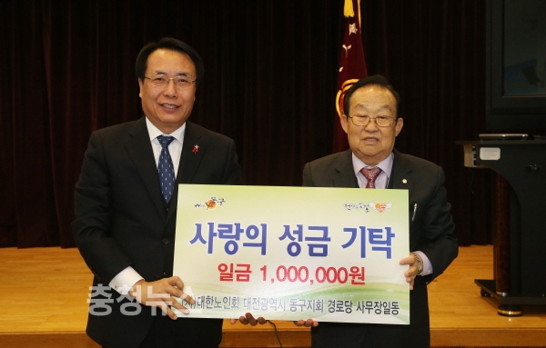 대전 동구 한현택구청장은 지난 17일, 18일 양일에 거쳐 (사)대한노인회 대전광역시 동구지회 강봉섭회장의 ‘천사의 손길 기탁식’을 가졌다.