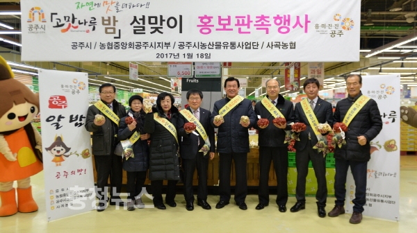 특히, 지난 18일에는 최대 매출처인 농협유통 양재점 홍보판촉행사에 오시덕 시장, 민주식 농협공주시지부장, 이진양 사곡농협조합장, 박승문 세종공주원예조합장을 비롯해 관내 20여 밤재배 농가들이 참여, 서울과 수도권 고객들의 마음을 사로잡는데 힘을 모았다.