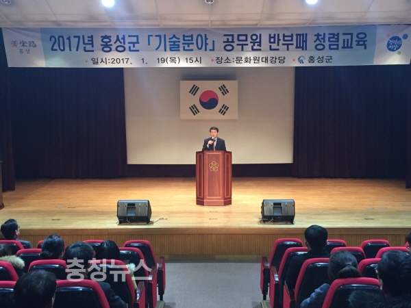 충남 홍성군은 19일 홍성문화원에서 기술직공무원 100여명을 대상으로 반부패 ·청렴 교육을 실시했다.