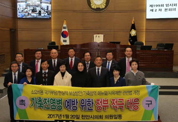 천안시의회(의장 전종한)는 지난 20일 제199회 임시회 제2차 본회의에서, '가축전염병 안정망 구축'을 위한 매뉴얼 재검토 및 '국비지원 확대 건의문'을 채택하고, 정부에 근본적인 대책을 요구하고 나섰다.