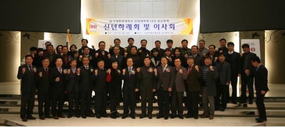 한밭대학교 최고경영자과정 신년교례회에서 단체기념사진 촬영을 하고 있다.
