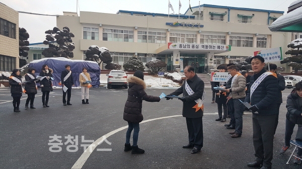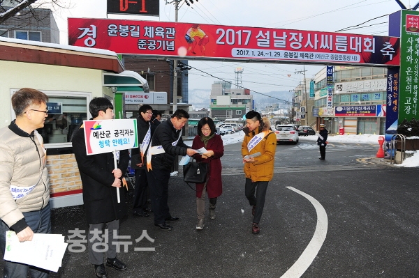 충남 예산군은 23일 군청 광장에서 설 명절을 맞아 직원들이 자발적으로 참석하는 청렴 릴레이 캠페인을 실시했다고 밝혔다.