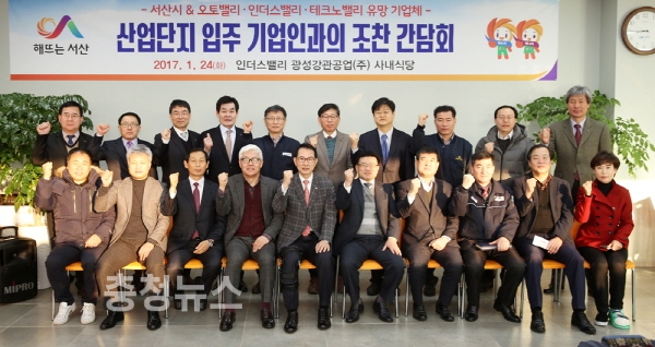 서산시는 24일 성연면 인더스밸리 내에 위치해 있는 광성강관공업에서 산업단지 입주기업인과의 조찬간담회를 열고 기업의 애로사항을 청취하며 상생발전 방안을 협의했다.