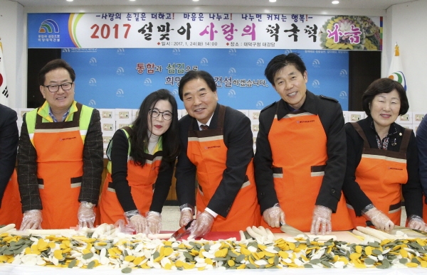 대덕구자원봉사센터 박수범이사장은 24일 구청 대강당에서 ‘설맞이 사랑의 떡국떡 나눔 행사’를 가졌다.
