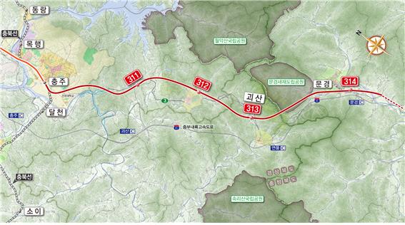 철도시설공단은 2단계 사업 중 괴산통과구간인 8공구(11㎞)에 대해 지난해 6월부터 최근 1월까지 실시설계를 진행하면서, 괴산군 연풍면 원풍리 지점에 ‘(가칭)313역’으로 정거장 설치를 최종 확정했다.