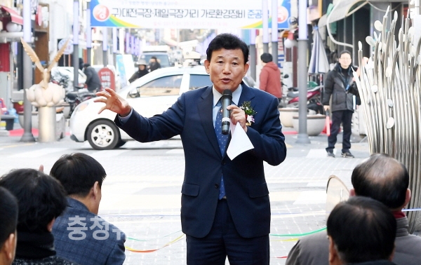 01.25 구)대전극장.제일극장거리 가로환경정비 준공식에서 박용갑 중구청장이 인사말을 하고 있다