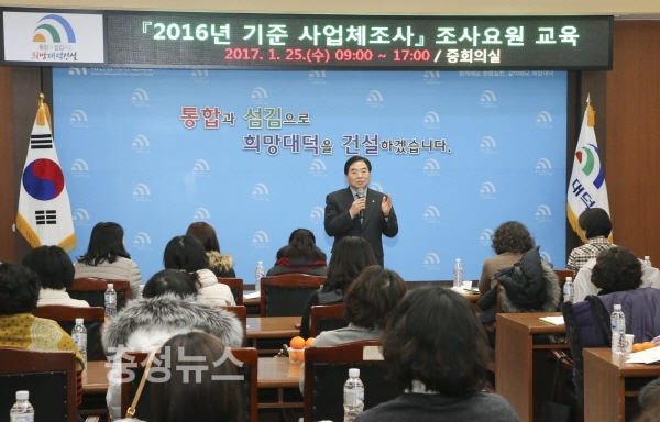 대전 대덕구 박수범구청장은 25일 구청 중회의실에서 ‘2016년 기준 사업체조사’ 조사요원 교육을 실시했다.