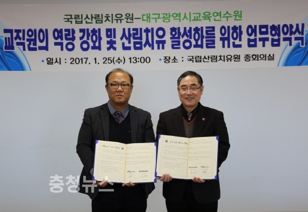 연평식(좌측) 국립산림치유원장,한원경 대구시교육연수원장(우측) / 충청뉴스 최형순 기자
