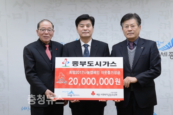 중부도시가스 2,000만원, 세종시 공무원 1,600만원 성금 기탁