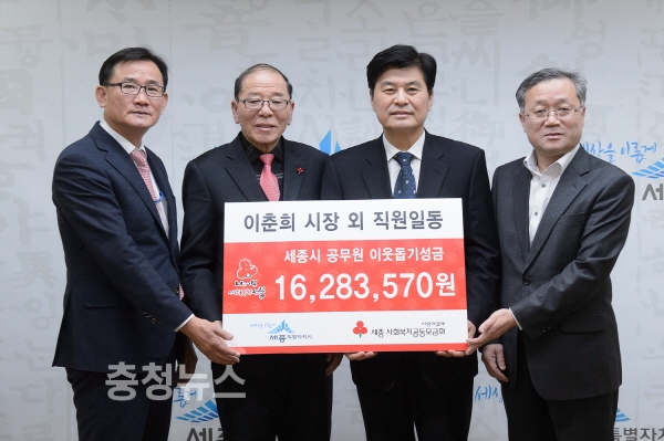 이날 세종시 공무원(시장 이춘희 외 직원일동)이 1,600여만원을 기탁했다. 희망 2017 나눔캠페인 공무원 모금액과 지난해 월급 자투리를 합한 금액이다.