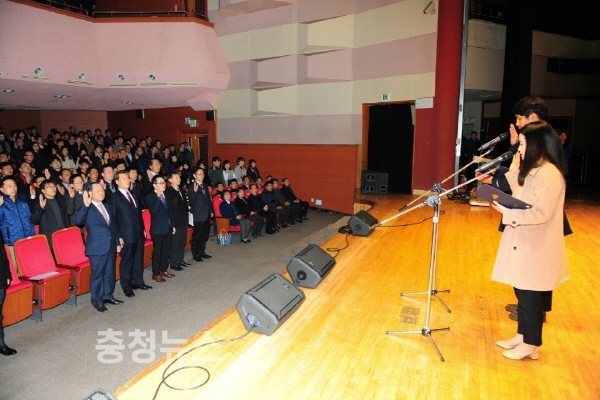 지난 1일 문예회관에서 ‘2017년 반부패 청렴실천 결의대회’가 개최돼 공직자 대표가 청렴 선언문을 낭독하고 있다