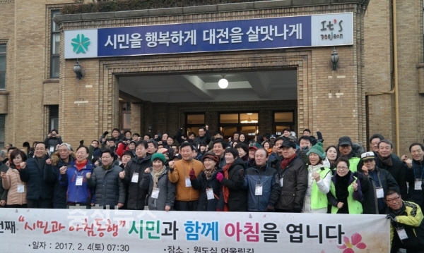 권선택 대전시장은 4일 오전 7시 30분 350여명의 시민이 참석한 가운데 대전사랑운동센터의 주관으로 제16회 ‘시민과 아침동행’을 열고 시민들과 옛 도청에서 원도심 어울림길을 걸으면서 소통의 시간을 가졌다.