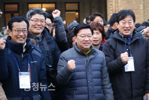 왼쪽으로 부터 권선택 시장, 김경훈 의장, 설동호 교육감 등