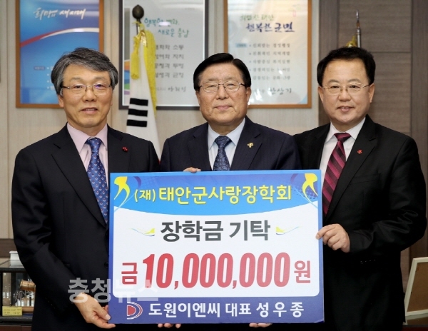 ㈜도원이엔씨 성우종 대표가 (재)태안군사랑장학회에 장학금을 기탁하며 지역사랑의 마음을 전했다.