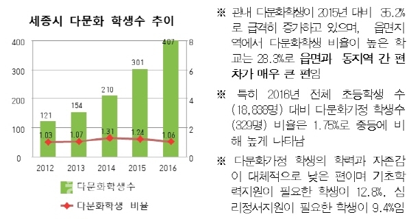 아울러 “다문화가정 학생이 2015년 이후 매년 20% 이상 증가(지난해12.31일 기준 407명)함에 따라 모든 학생들이 다문화 사회의 구성원으로 함께 어울려 살아갈 수 있는 다양한 정책을 마련하고, 다문화 학생의 특성에 중점을 둔 맞춤형 지원을 강화하기 위해 수립했다”고 말했다.