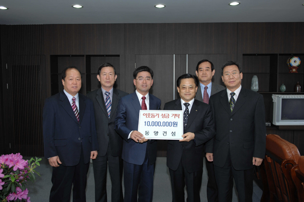 한편 동양건설주식회사는 중소기업으로서 전문건설을 운영하는 선도적인 기업으로 개폐식 낙석붕괴 방지장치, 중앙분리대, 도로표지판, 미끄럼방지시설 등을 제작 설치하는 업체로서 그 동안에도 어려운 이웃을 위한 후원사업에 적극 동참했다.