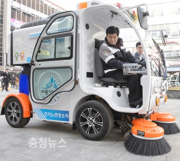 세종시는 급격한 도시 팽창과 인구증가에 따라 도심지 가로길 청소의 효율성을 높이고 미세먼지 저감을 위해 전기노면청소차를 도입, 조치원과 아름동, 한솔동, 보람동에 각각 1대를 운행한다.