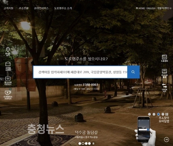 도로명주소안내시스템은 도로명주소, 지번, 우편번호, 위치지도 및 영문주소 등 도로명주소와 관련된 각종 정보를 제공한다.