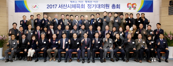 충남 서산시체육회는 8일 시청 대회의실에서 이완섭 서산시장을 비롯한 시 체육회 임원과 가맹경기단체장, 읍면동 체육회장 등 대의원들이 참석한 가운데 2017년도 정기 대의원총회를 개최했다.