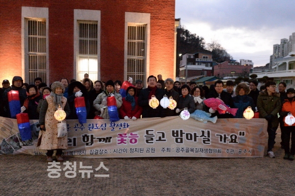 특히, 이날 행사를 위해 골목길재생협의회 회원들이 공주 원도심 활성화를 기원하는 LED 창작등을 직접 제작, 밤마실을 나선 이들의 길을 환하게 밝혀 주기도 했다.