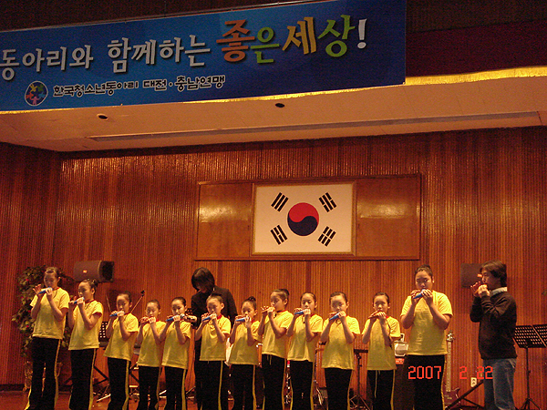 한국 청소년 동아리 대전.충남 연맹(이창기 총재)원촌 정보 산업학교를 방문 위문 공연