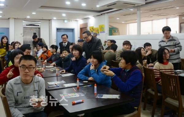 윤영균 원장을 비롯한 한국산림복지진흥원 직원들은 밀알복지관에 생활필수품을 전달한 뒤 복지관 교육생 30여 명을 대상으로 솟대만들기 체험을 가졌다.