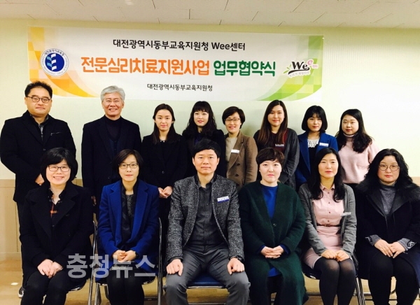 대전동부교육지원청(교육장 이기자) Wee센터는 관내 초・중학교 위기부적응학생과 학생정서행동특성검사 관심군 학생들에게 전문적인 상담서비스를 제공하기 위해 지난 14일 전문심리치료지원 7기관과 협약을 체결했다고 16일 밝혔다.