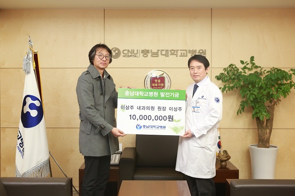충남대학교병원(원장 송민호)은 신장내과와 혈액투석 전문의료기관 이상주 내과의원의 이상주 원장이 충남대병원발전기금(신장내과 기금)으로 1천만 원을 기부했다고 16일 밝혔다.