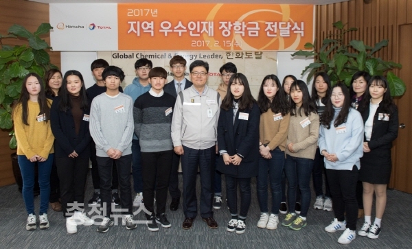한화토탈(대표이사: 김희철)이 15일 대산공장 경영회의실에서 우수 대학에 입학한 지역 학생들 대상으로 ‘2017 지역 우수인재 장학금 전달식’을 개최했다.