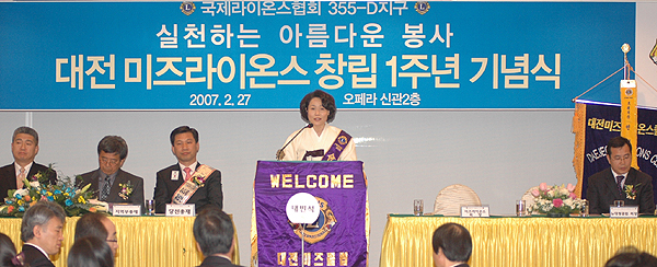 권의원 미즈 라이온스 회장 역활 27일 오후 둔산동 오페라 웨딩홀에서 국민중심당 비례대표 권형례 시의원이 회장으로 있는 미즈 라이온스 클럽 창립1주년행사를개최했다. ▲ 권형례 미즈 라이온스 클럽회장과 한기온 차기총재 미즈 라이온스는 전문직에 종사하는 여성회원들과 스폰서 클럽 회원들 100여명을비롯해 김영관 시의회 의장 참석한 가운데 개최했다. 특히 같은 당소속 중심당 심대평 후보와 남충희 전 대전시장 후보가 참석해 눈길을 끌었다. ▲ 권형례 회장 저작권자 © 충청뉴스 무단전재 및 재배포 금지 김거수 기자 다른기사 보기 기사가 마음에 드셨나요? 충청뉴스 좋은 기사 후원하기 1,000원 3,000원 5,000원 10,000원 30,000원 50,000원 직접입력 비회원 약관동의하기 ※ 소중한 후원금은 더 좋은 기사를 만드는데 쓰겠습니다.