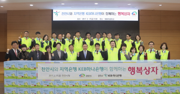 한편, KEB하나은행은 천안시금고 은행으로서 행복상자 이외에도 공익신탁, 천안시복지재단 후원, 외국인 근로자를 위한 일요영업 등을 통해 천안시민의 복지, 경제, 문화 발전에 앞장서고 있다.