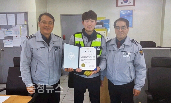 대전 둔산경찰서 심은석 경찰서장이 21일 둔산지구대를 방문하여 절도 중요범인을 검거한 이건 순경에게 표창을 수여했다.