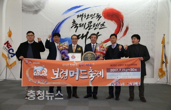 보령시는 22일 오후 서울시청 시민청에서 열린 2017 대한민국 축제콘텐츠 대상 시상식에서 김동일 시장과 이용열 재단 사무국장 등 관계자가 참석한 가운데 축제글로벌 명품부문 특별상을 수상했다고 밝혔다.