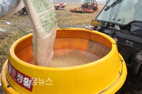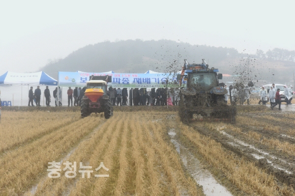 한편, 맥류 봄파종 재배기술 확대보급 시연은 ‘들녘별 쌀 경영체 연계 국산 보리ㆍ밀 생산단지 시범사업’의 일환으로 추진되었다. 또한, 봄파종 시연은 지속적인 쌀값하락에 따른 농업인 소득 감소로 대체 소득원의 개발뿐만 아니라 최근 가을철 잦은 강우로 인한 파종시기 일실에 따른 봄재배기술을 정립하고자 실시하게 됐다.