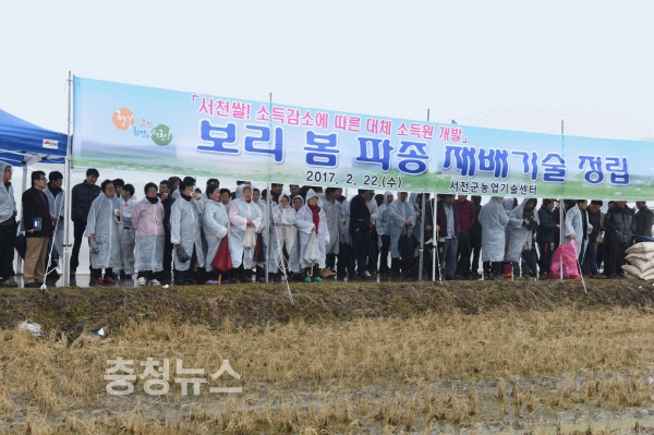 군은 22일 기산면 원길리에서 농업인 200여 명이 참석한 가운데 열린 ‘보리 봄파종 재배기술 확대보급 현장’에서 노박래 군수는 “서천군 농업의 기반은 대부분 논을 활용한 벼농사라서 소득대처방안을 찾기가 어려운 실정이다”며