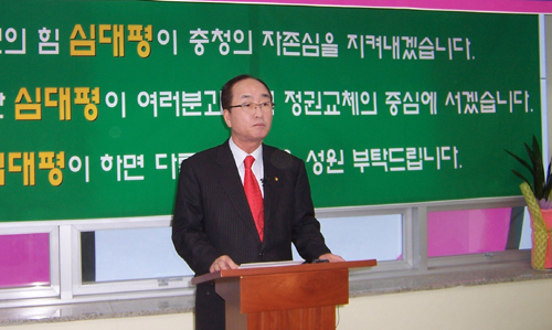 4.25 대선 서구 을 국회의원 보궐선거에 출사표를 던진 국민중심당 심대평 후보가 7일 기자회견을 갖고 연합공천 및 선거연합 대상으로 거론되는 것에 대한 단호하게 거부 입장을 밝혔다.