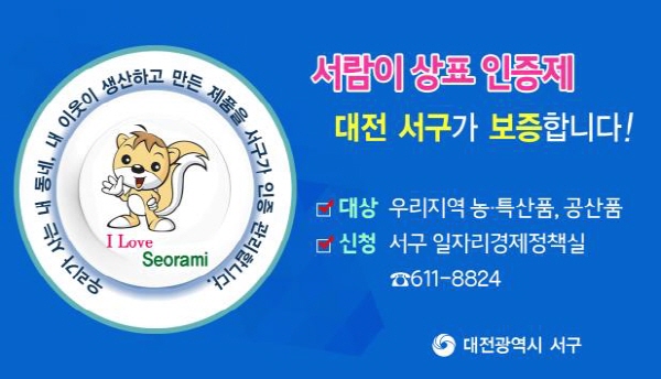 대전 서구 장종태 구청장은 ‘구민들을 위하여 부지런히 살펴본다’는 의미를 담고 있는 캐릭터 서람이를 2005년에 특허 등록하고, ‘서람이 고유상표 인증제’를 시행중에 있다.