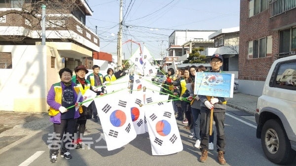 대전 중구 유천2동주민센터(동장 송혜숙)는 27일 제98주년 3·1절을 맞아 나라사랑 정신을 고취하기 위해 동자원봉사협의회(회장 유재경) 회원과 함께 ‘나라사랑 태극기 달기 캠페인’을 전개했다.