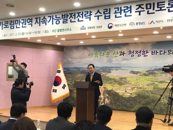 성일종 국회의원(충남 서산·태안)이 27일 서산 팔봉면 사무소에서 ‘가로림만권역 지속가능발전전략 수립 관련 주민 토론회’를 개최했다.