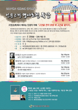 대전평생교육진흥원(원장 송용길)은 다음달 7일부터 매월 보문산 1층 컨퍼런스홀에서 문학 역사 철학 분야 명강사들을 초빙, ‘2017년도 인문고전 읽기운동’ 특강을 시작한다.