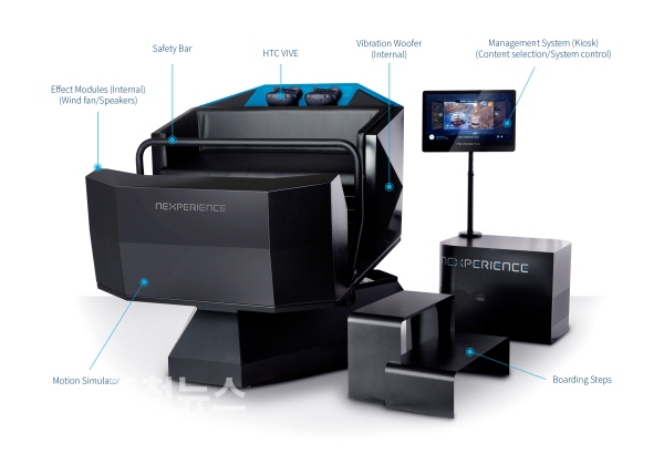 골프존유원홀딩스는 넥스피리언스와 함께 시뮬레이터 제품인 ‘VR라이드’와 ‘VR인터렉티브 모션체어’를 선보인다.