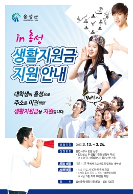 충남 홍성군(군수 김석환)은 관내 대학교 재학 대학생을 대상으로 전입유도 및 생활안정에 기여하고자 생활지원금을 지급한다.
