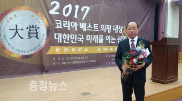 ‘2017 코리아 베스트 의정대상’은 투철한 사명감과 확고한 국가관으로 국가발전은 물론 주민들의 복지향상 및 지역사회 발전에 공헌한 국회의원과 광역·기초의원들에게 주어지는 상이다.