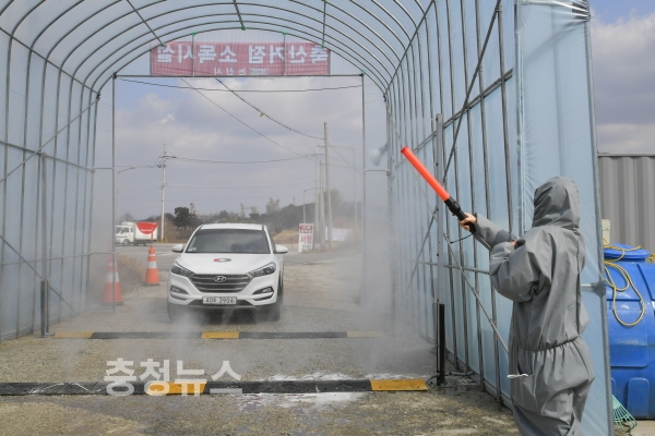 시는 AI발생에 따라 거점소독시설 3개소(부적, 연무, 강경)와 이동통제초소(은진)와 산란계 통제초소(금강LF앞)를 24시간 운영하고 있다.