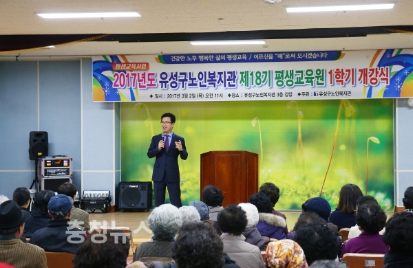 대전 유성구 허태정 청장은 2일 신성동 노인복지관에서 ‘2017년도 유성구노인복지관 제18기 평생교육원 1학기 개강식’을 개최했다.