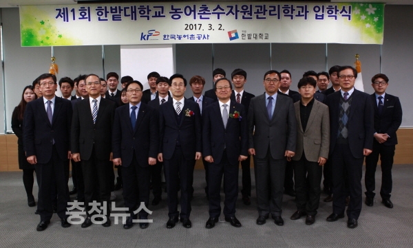 한국농어촌공사(사장 정승)는 2일 전남 나주 한국농어촌공사 본사에서 한밭대 농어촌수자원관리학과 입학식을 개최했다.