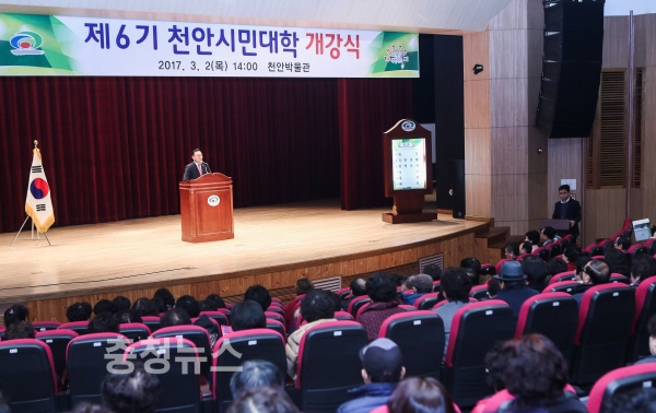 천안시는 2일 천안박물관에서 교육생 200여명이 참석한 가운데 ‘제6기 천안시민대학(학장 구본영) 개강식’을 개최했다.
