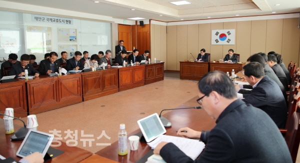 충남 태안군이 6일 군청 소회의실에서 한상기 군수 주재로 ‘주요사업 추진상황 보고회’를 개최하고 지난해와 올해 미래전략사업을 비롯해 군이 올해 중점적으로 추진 중인 사업들에 대한 추진 상황을 점검하는 시간을 가졌다.