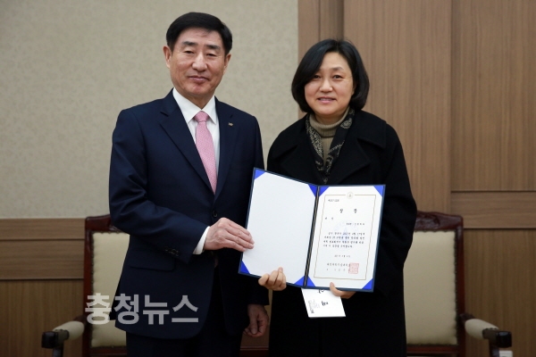 김은기 총장과 대상을 수상한 간호학과 김영희 교수