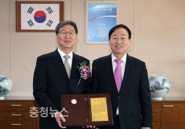설동호 교육감, 명예퇴직 이중흔 부교육감 송공패 전달